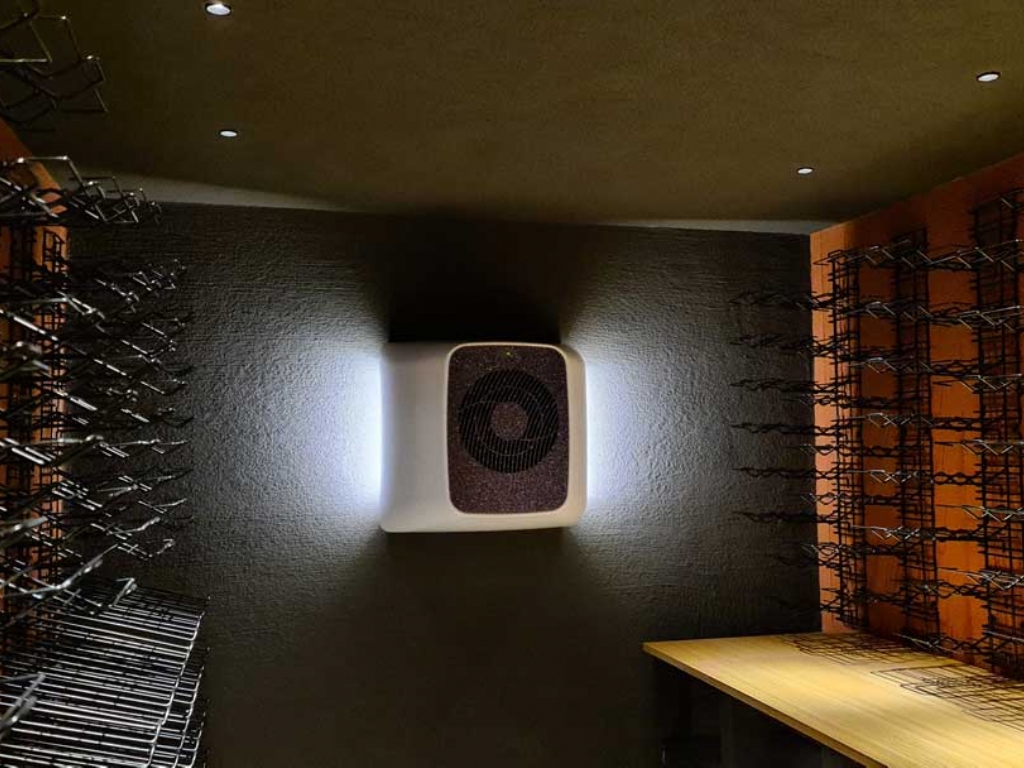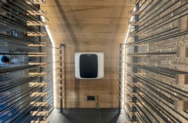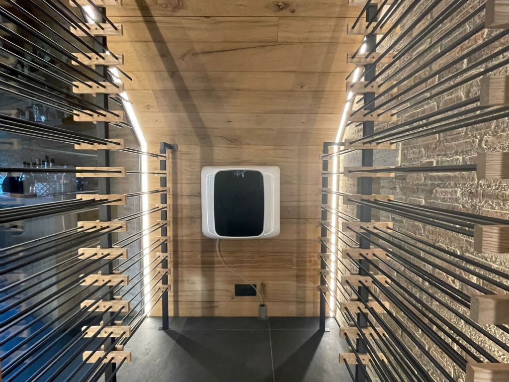 Η μονάδα έχει σχεδιαστεί ώστε να ενσωματώνεται αρμονικά στον χώρο, αποτελώντας μέρος της αισθητικής του wine cellar, ενώ παράλληλα εξασφαλίζει σταθερές συνθήκες για τη σωστή συντήρηση και παλαίωση του κρασιού.