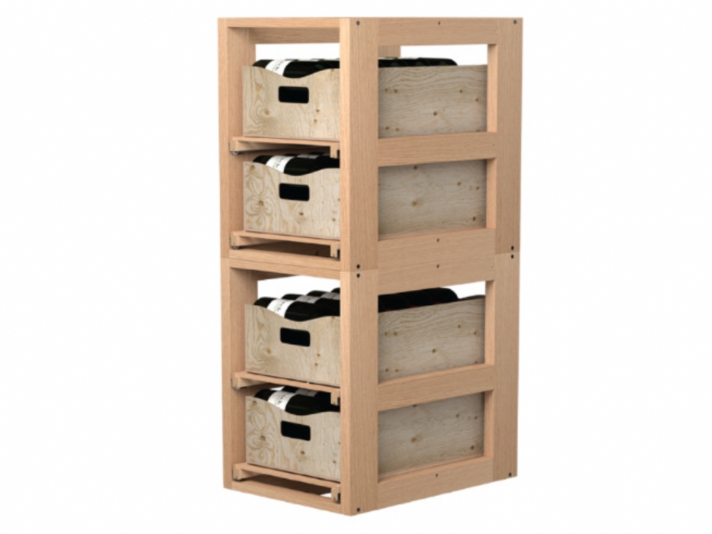 | VisioBox 4 | 2 μονάδες, 4 συρταρωτά ράφια, kit σύνδεσης | 4 κιβώτια x 12 φιάλες | 4 x 15 φιάλες Bordeaux | Φυσική οξιά 30 mm | 24 kg | Kit ποδιών VRKPMB |